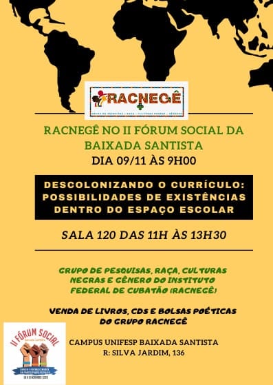 O RACNEGÊ – Grupo de Pesquisas Raça, Culturas Negras e Gêneros, atua na possibilidade da construção de um espaço de legitimação das diferenças, entendidas por suas/seus pesquisadoras/es como de fulcral importância na contemporaneidade.